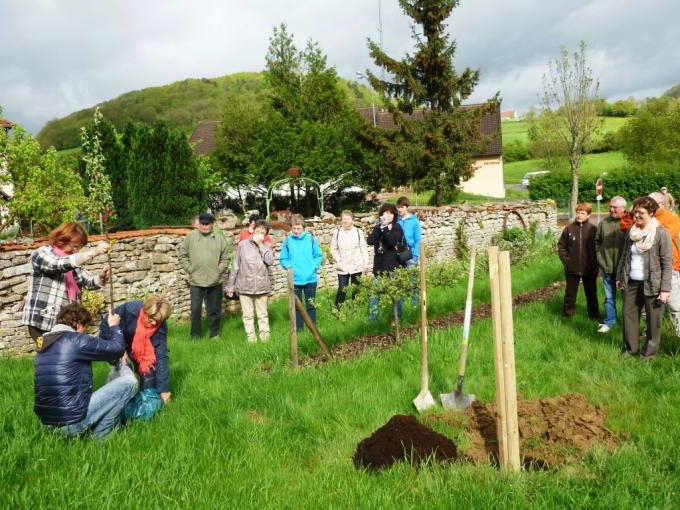 Le pommier souabe « Luiken » avait aussi quitté ses terres de Lenningen en bus. Enfin libéré le dimanche matin, il a pu gagner les terres polliennes pour s’enraciner au verger, Route de Dijon.