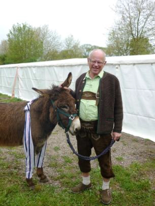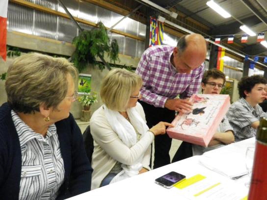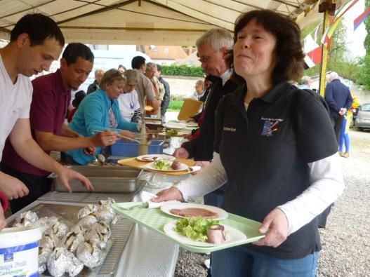 En soirée, accueil musical de l’Harmonie puis gastronomie française au son de l’accordéon, dans l’ambiance colorée du myosotis et du respect des « Alten Hasen ». Des promesses officielles de fidélité entre les Maires ; 25 bougies soufflées et des cadeaux raisonnables pour des Noces d’Argent raisonnées!